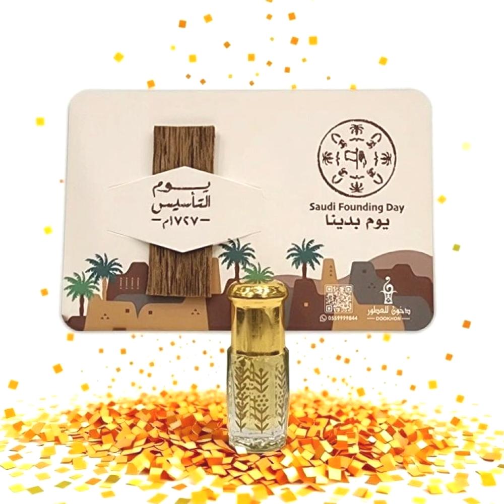 توزيعات يوم التأسيس السعودي مع عود مغلف ودهن فرنسي فاخر من اختيارك