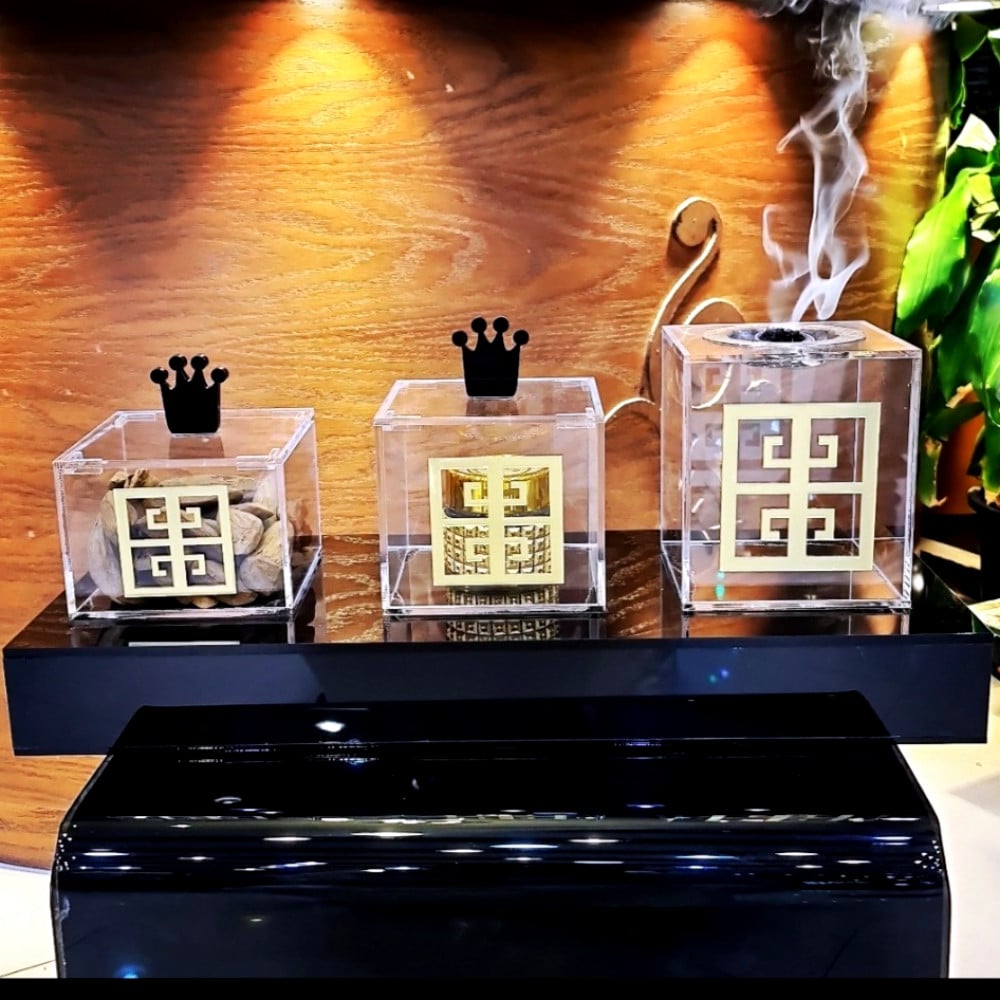 طقم مبخرة اكريليك اسود ثلاث قطع