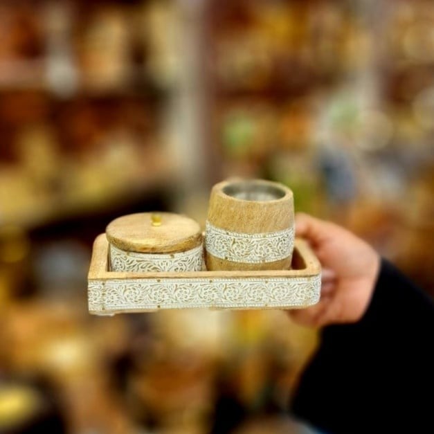 طقم مبخر مع علبة عود صناعة يديوية هندي