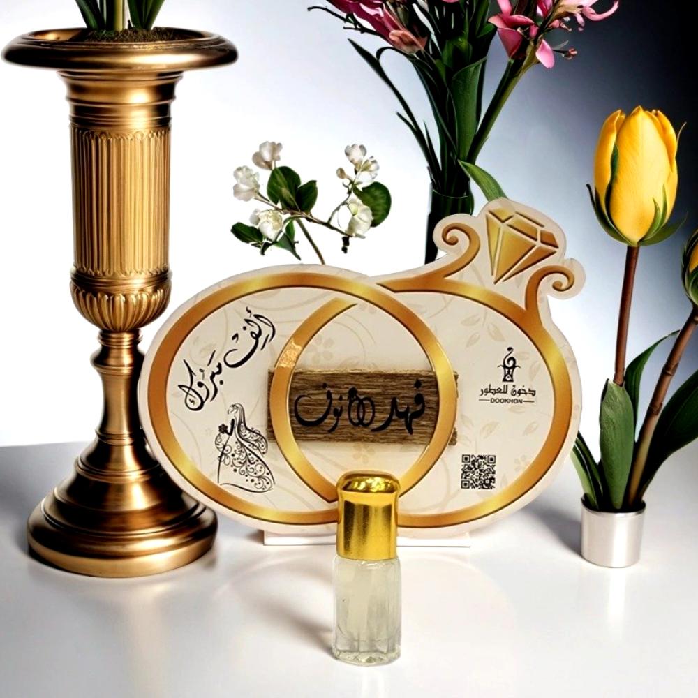 توزيعات زواج خطوبة ملكة بالاسم مع عود و دهن فرنسي